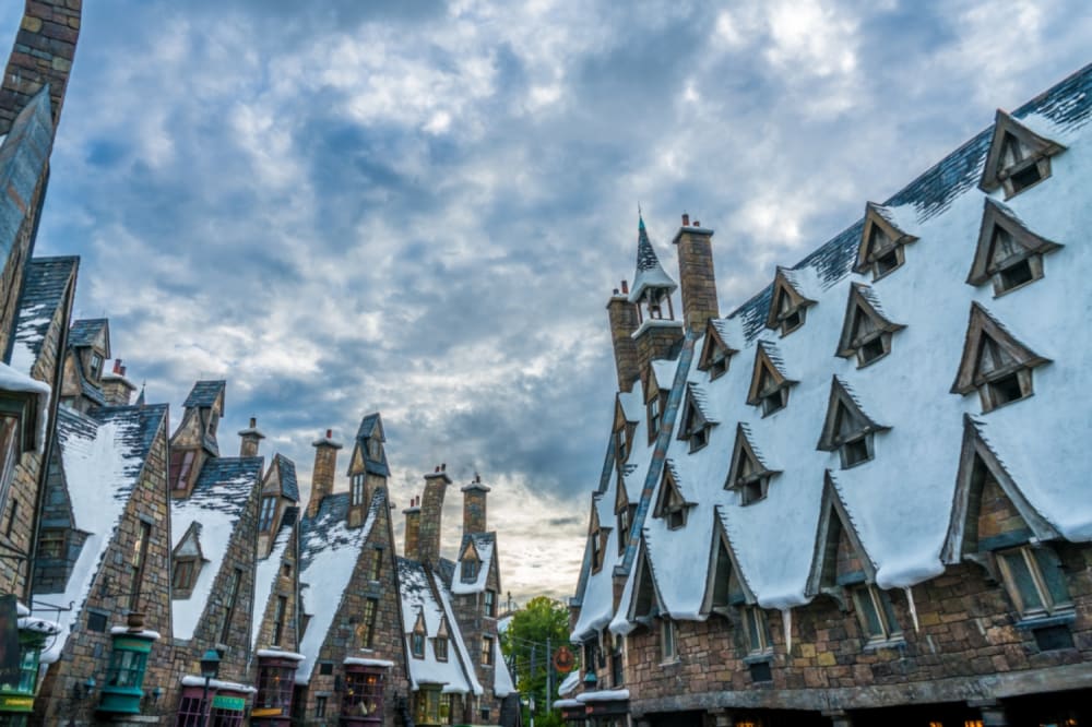 Hogsmeade feels instantly familiar, even on your first visit. Snow-topped rooftops line the village streets, butterbeer carts dot the pathways and Hogwarts Castle towers above everything, visible from almost every angle.